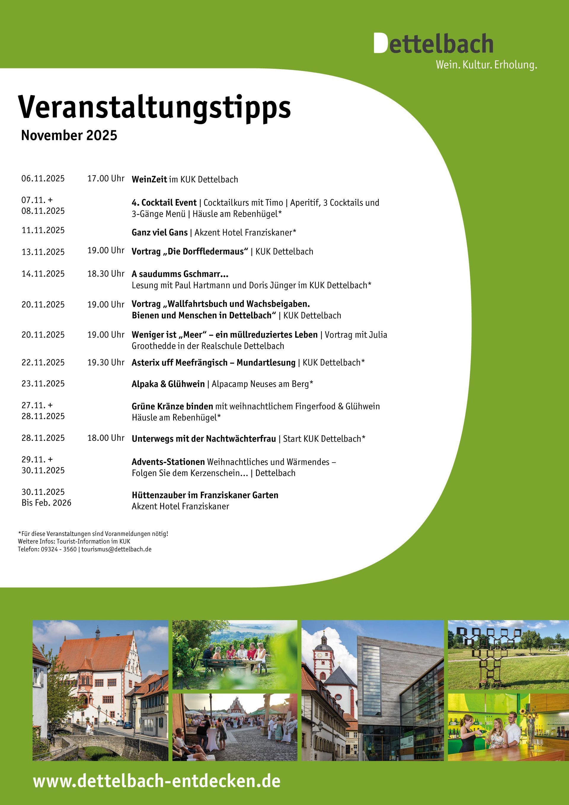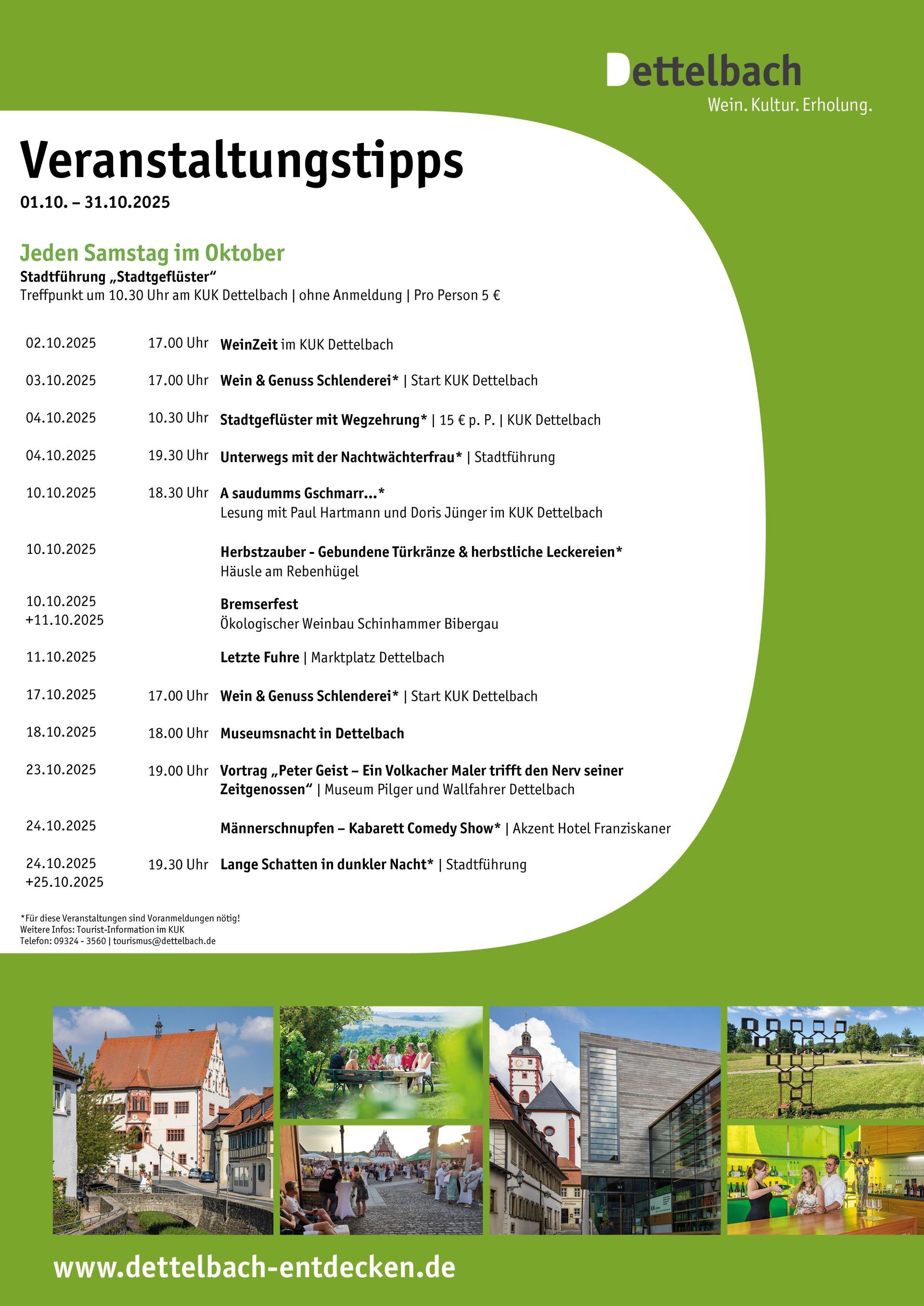Vermittlung über die Touristinformation im KuK.Dettelbach